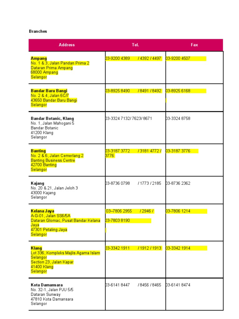Cawangan Bank Islam Di Selangor N KL PDF
