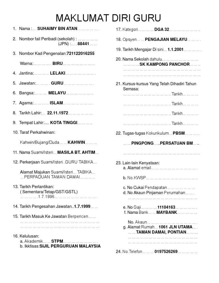 Maklumat Diri Guru Buku RPH PDF